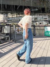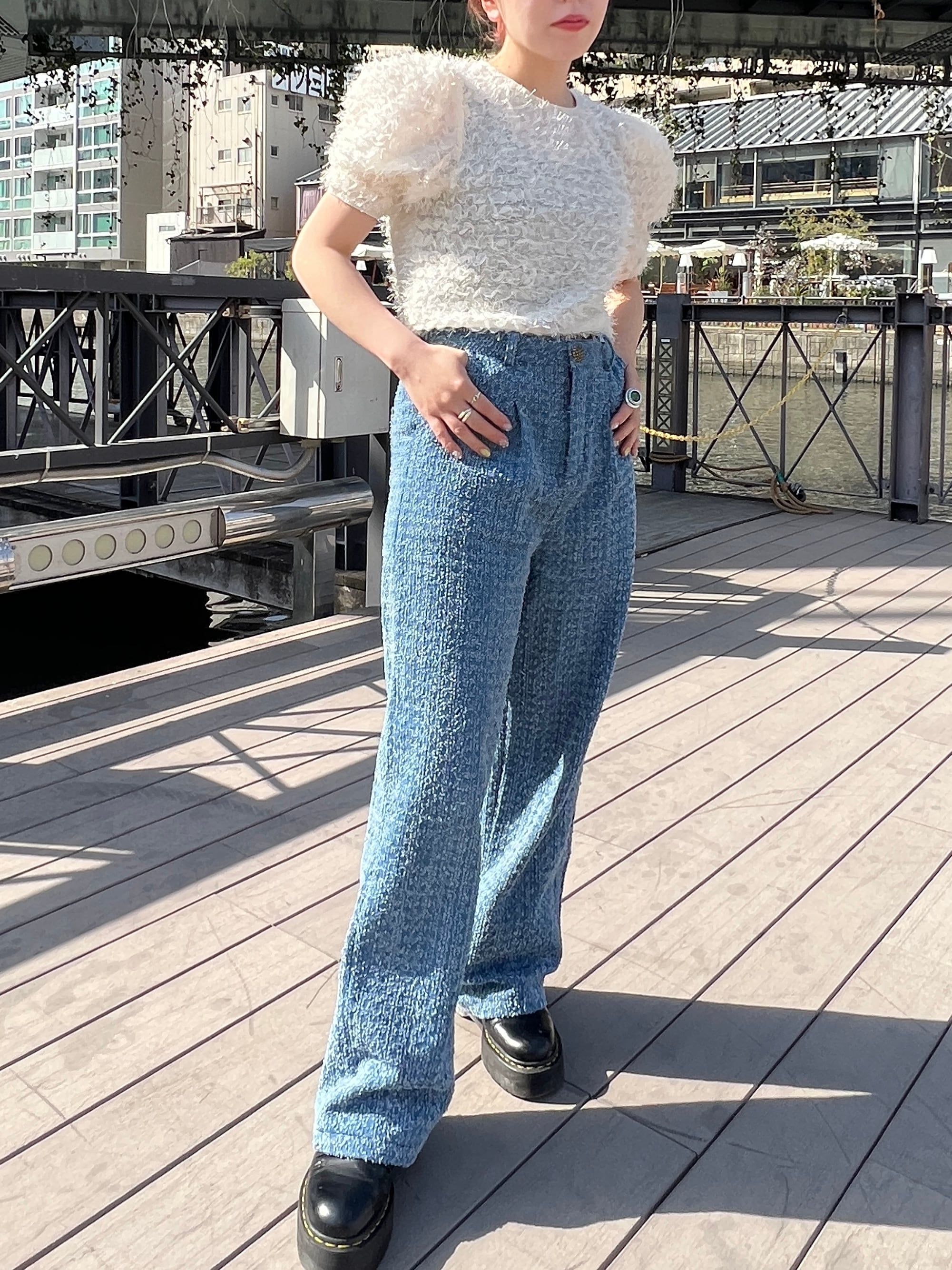 パフスリーブとクロップド丈がスタイルアップ効果も抜群。