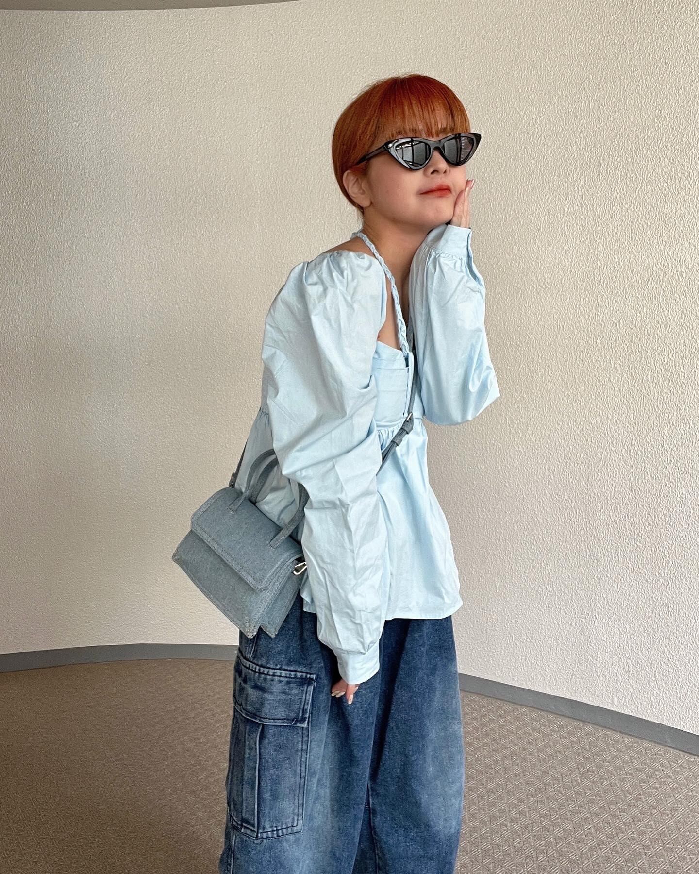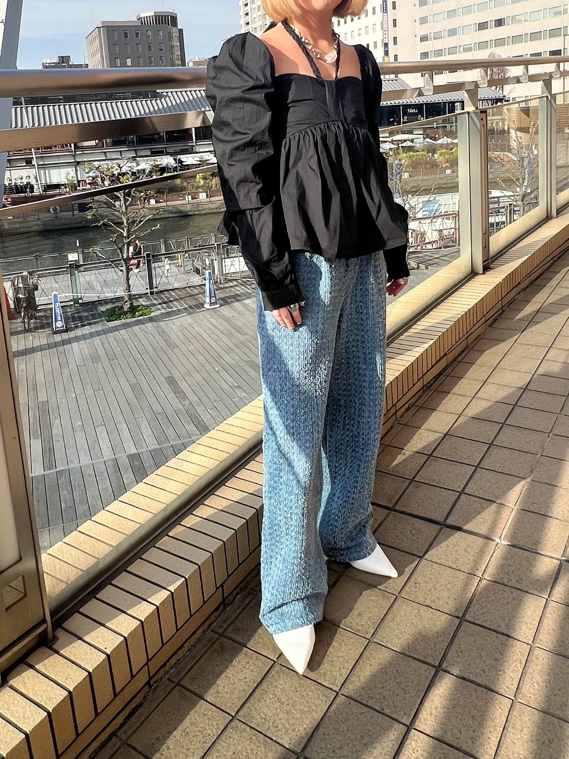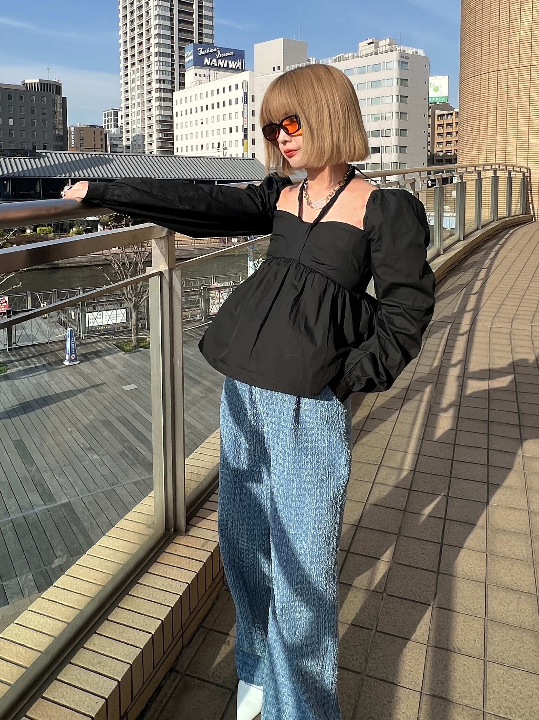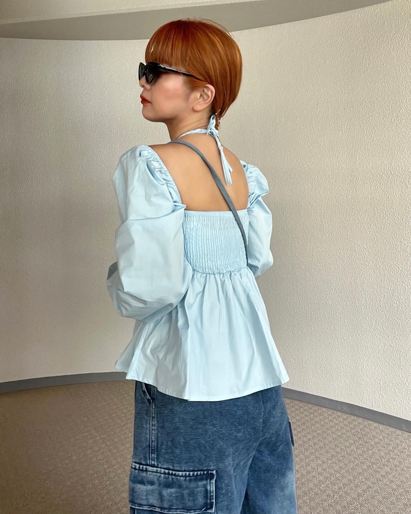 甘くなりすぎない、きちんと感のある印象のブラウス。四角いネックラインがフェミニンさをアップし、大人かわいい印象を醸し出します。シンプルなデザインでどんなボトムスとも合わせやすいので、重宝する一枚。