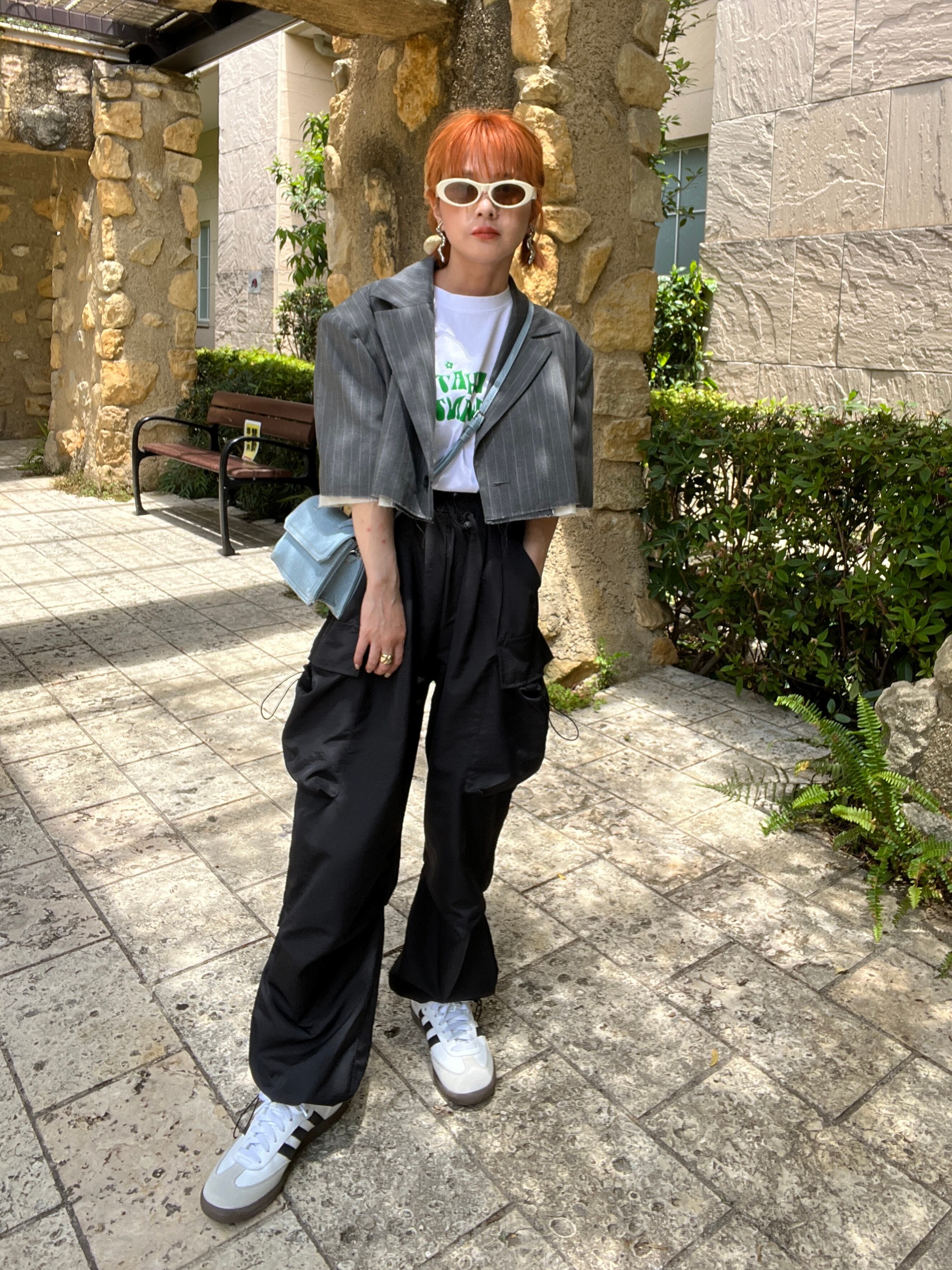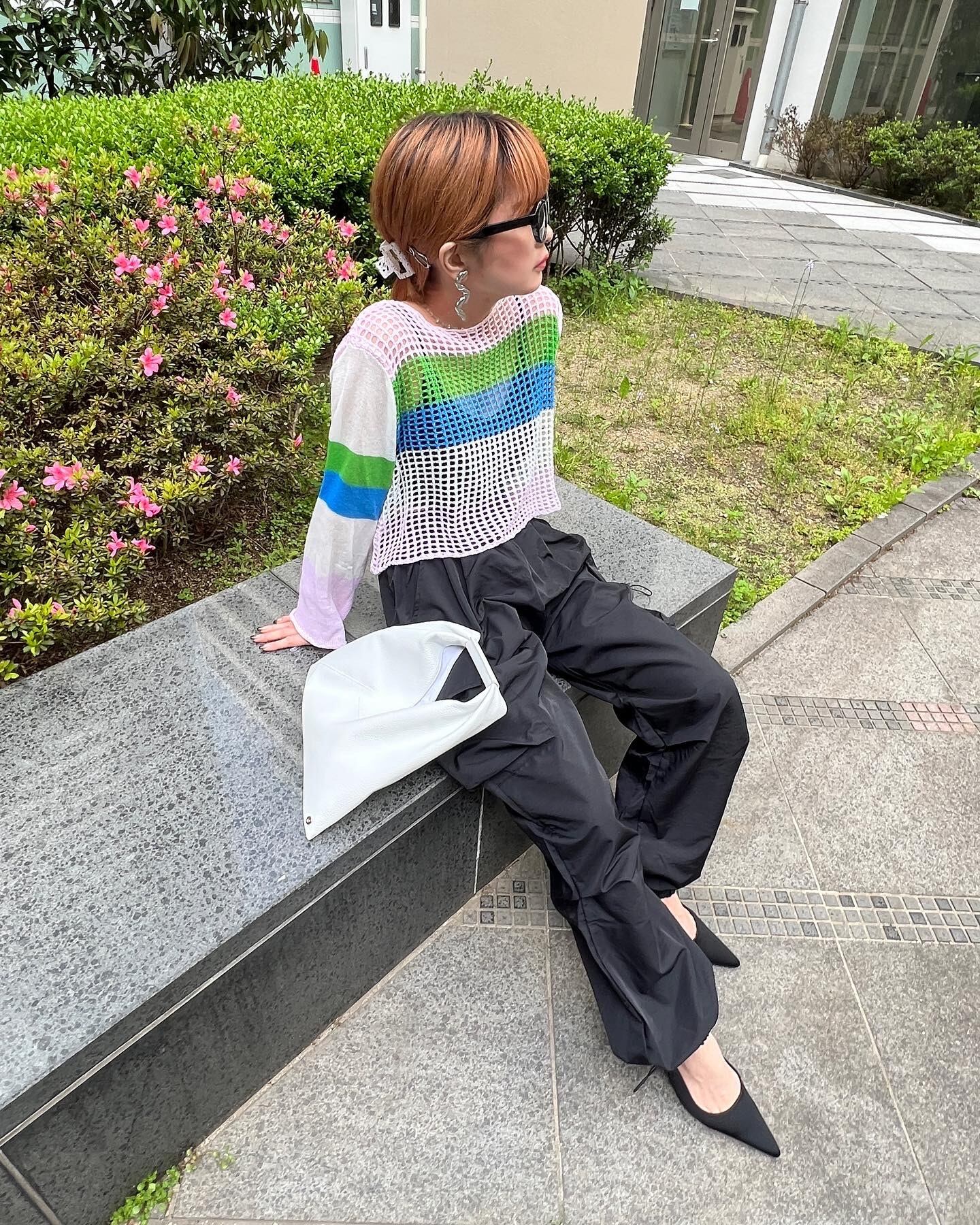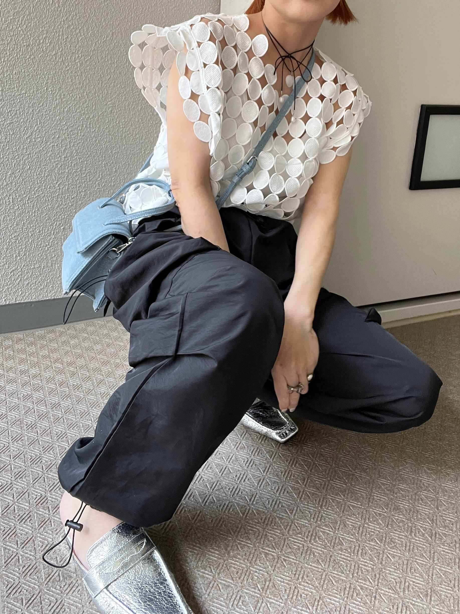 もちろんルーズなブラウスやスウェットと合わせてもかっこいいです。
