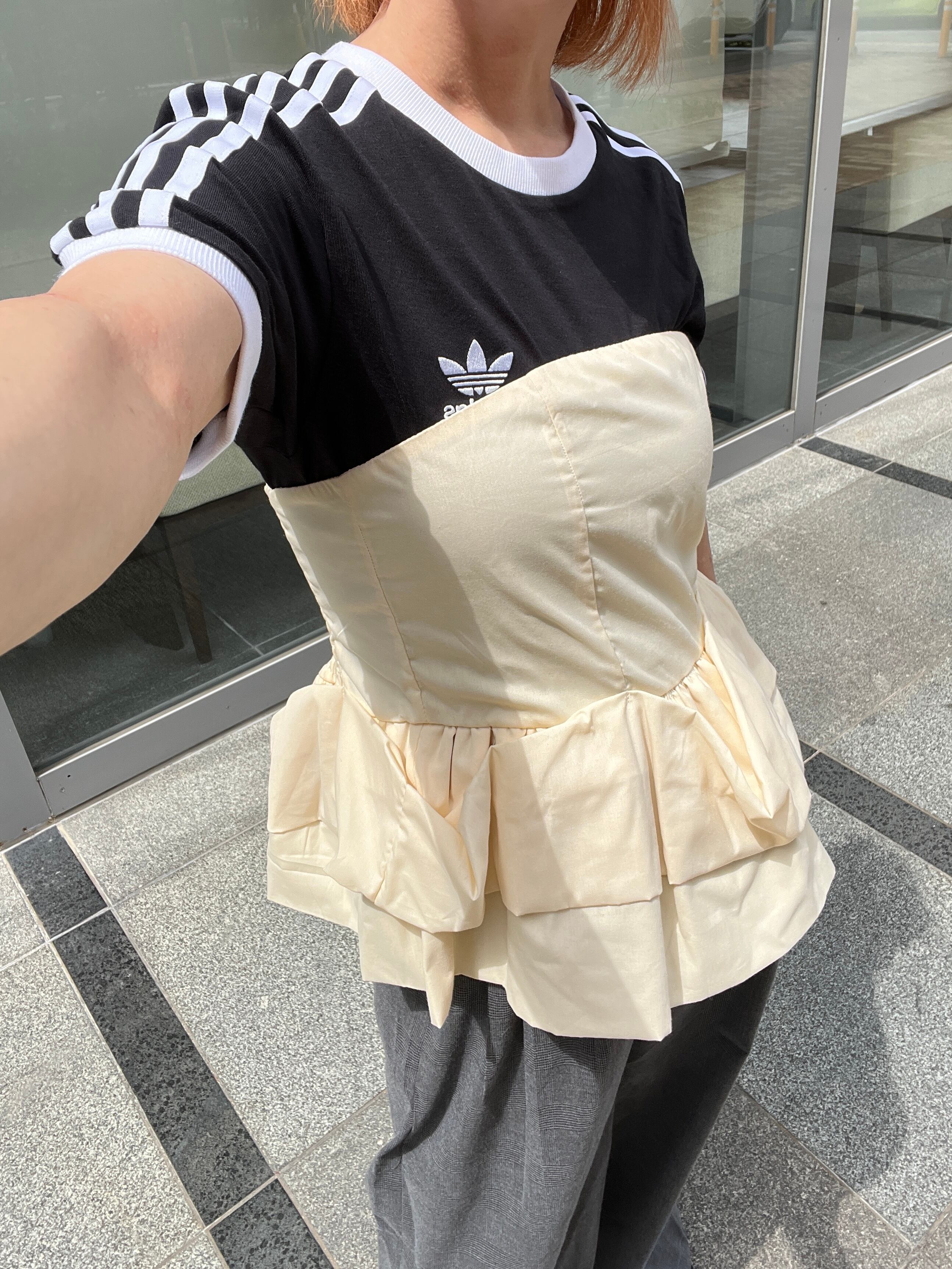 ボリューム感たっぷりなシルエットが印象的なバスチェ。シアーアイテムやTシャツと重ねるのはもちろん、そのまま肌見せして着てもかわいいです。