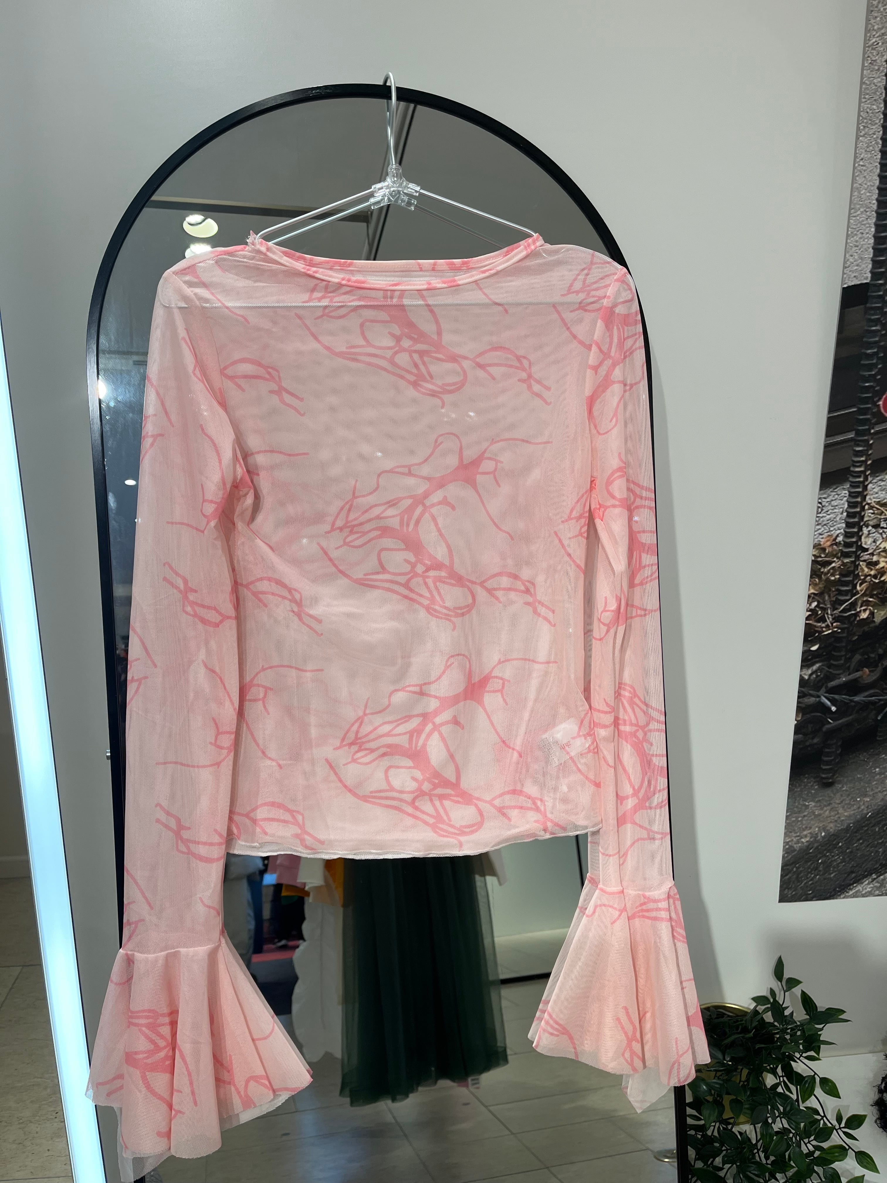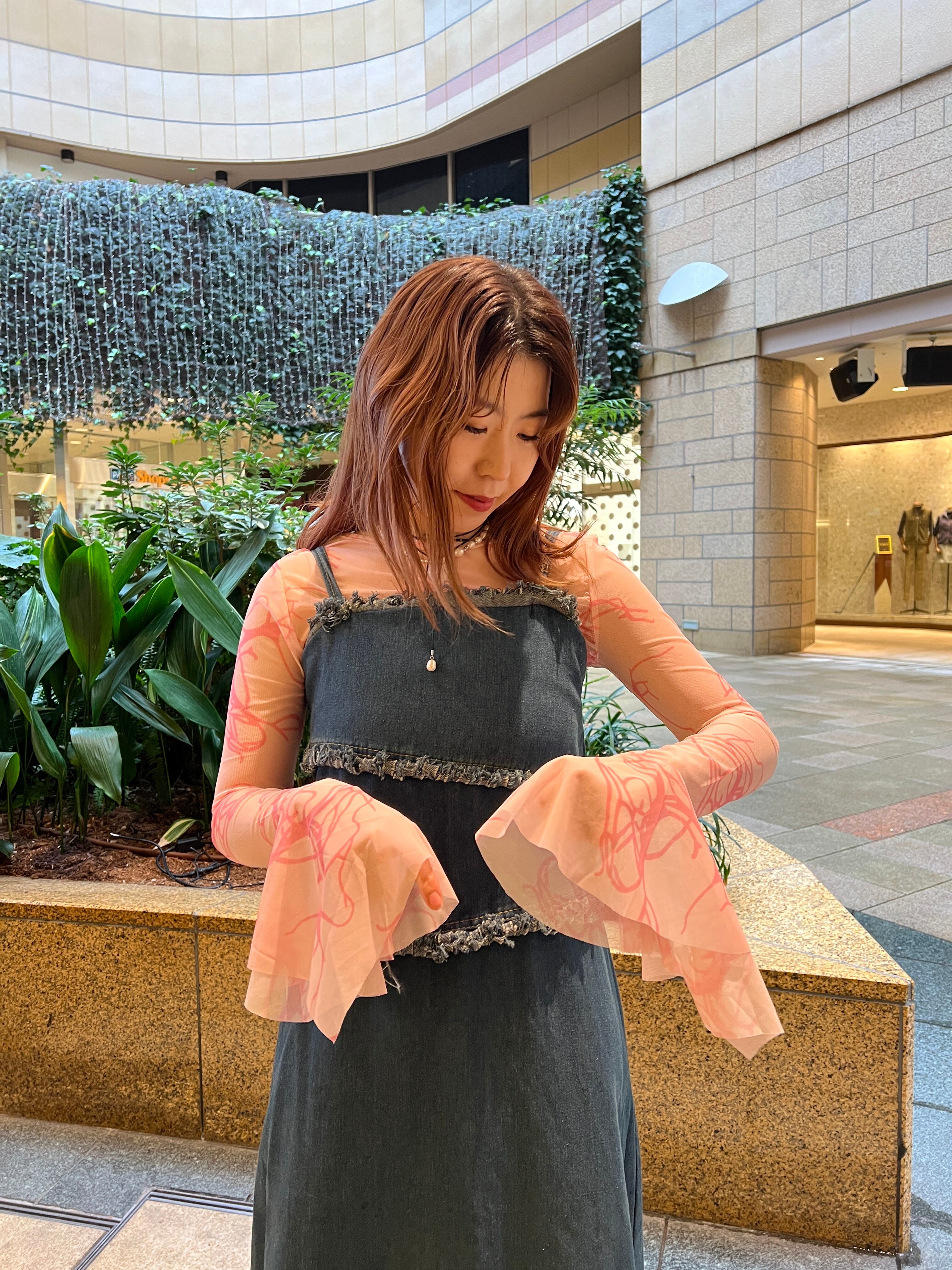 フレアシースルートップスは、女性らしい柔らかな雰囲気を演出するアイテムです。透け感のある素材とフレアスリーブで、どこか妖艶な魅力を放ちます。カジュアルなデニムパンツと合わせても、スカートと合わせても、女性らしい着こなしを演出できる優れもの。
